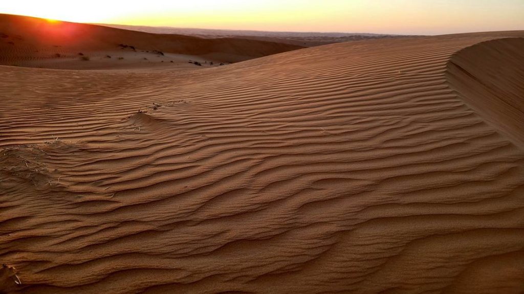 Nach einer weiteren Nacht in Nizwa führte die Route über Ibra, einem der ältesten Orte des Omans an den Nordrand der Wahiba Wüste und schließlich zu einem weiteren Highlight, einer Übernachtung in einem Wüstencamp. Rechtzeitig zum Sonnenuntergang war die kleine Gruppe dann auf einer hohen Sanddüne um die faszinierende Landschaft auf sich wirken zu lassen. Nach einem üppigen Abendessen genoss man am Lagerfeuer die Ruhe und Abgeschiedenheit der Wüste und den magischen Sternenhimmel.